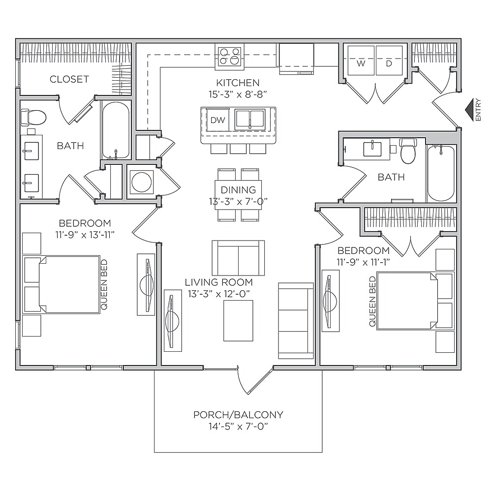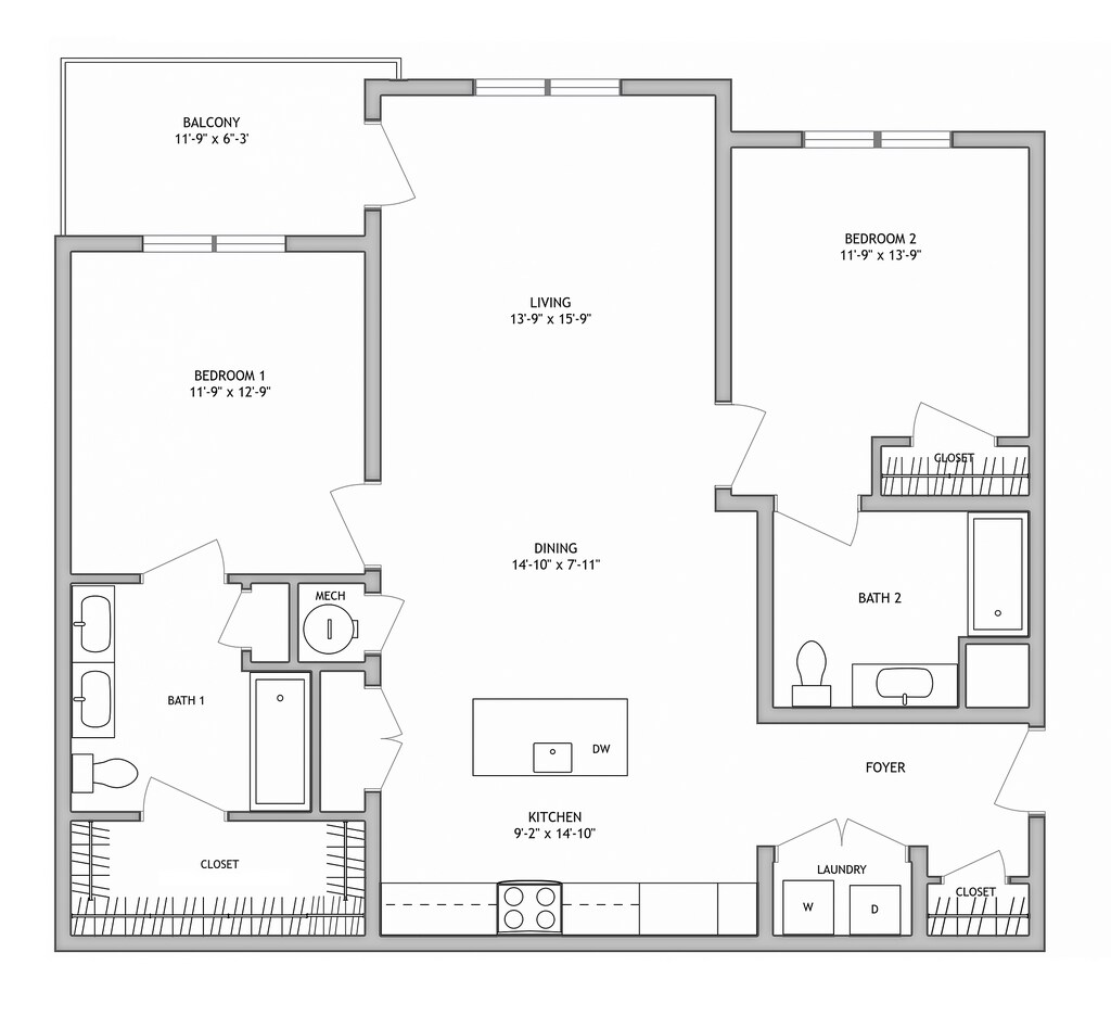 1 Dormitorio, 1 Baño, 737 pies²Disponible AhoraGalería del Modelo