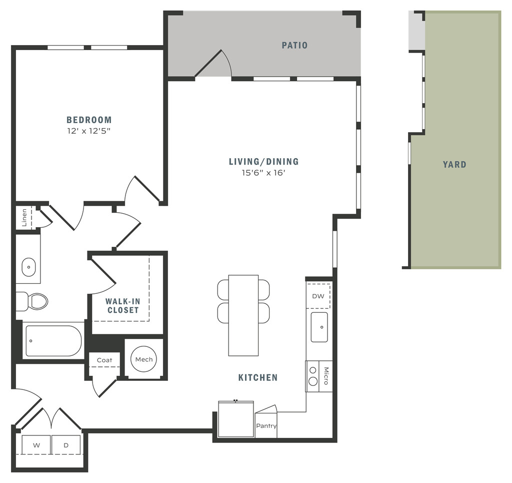 1 Dormitorio, 1 Baño, 860 pies²Disponible AhoraEl más grandeEsta opción tiene las unidades más grandes para este modeloGalería del Modelo