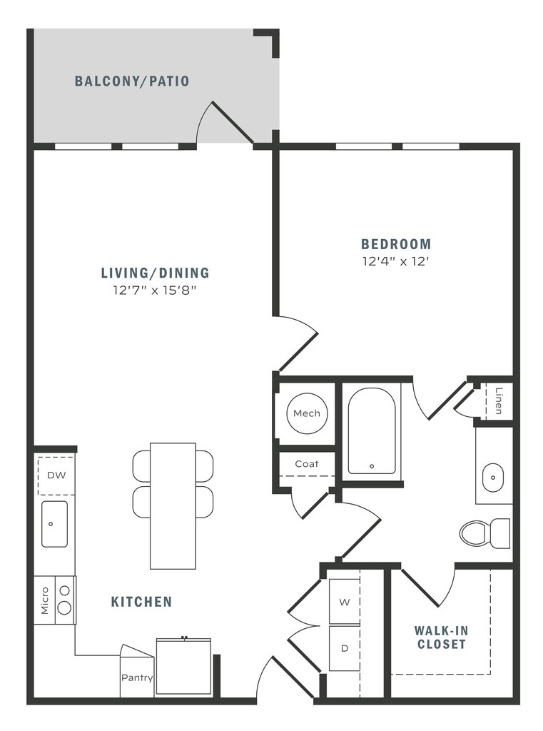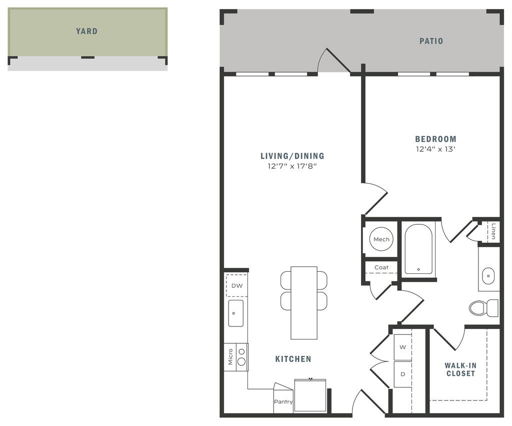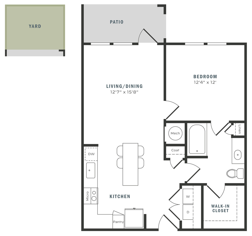 1 Dormitorio, 1 Baño, 763 pies²Disponible AhoraGalería del Modelo