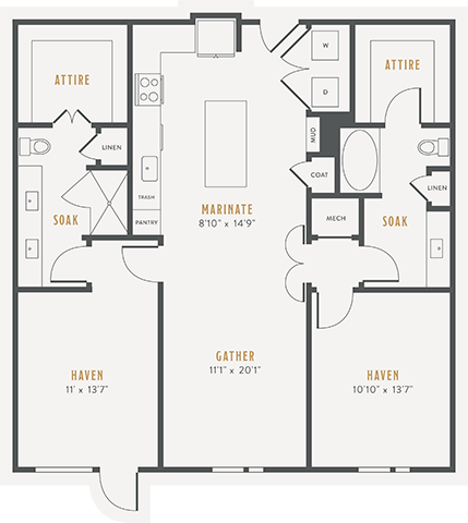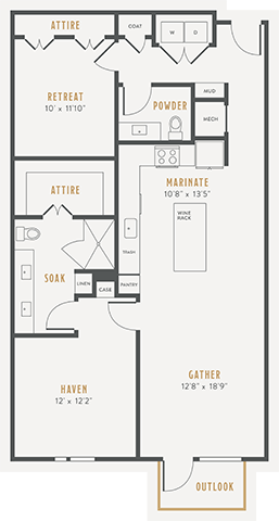 1 Dormitorio, 1 Baño, 717 pies²Disponible AhoraGalería del Modelo