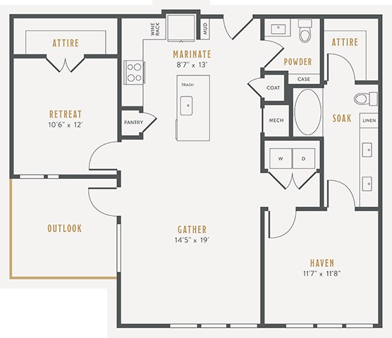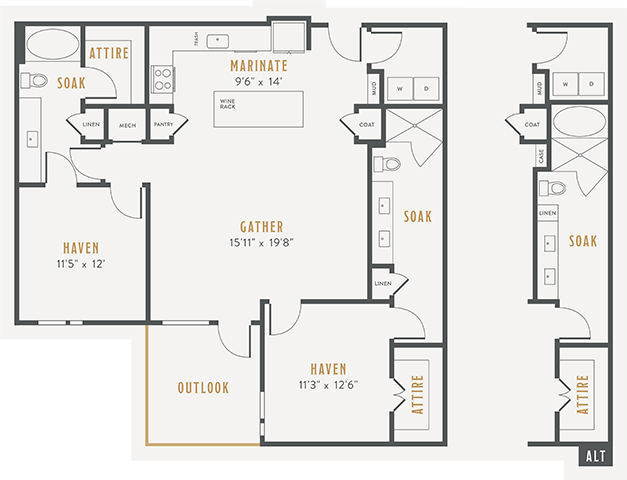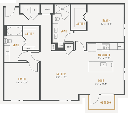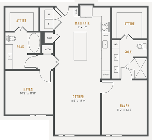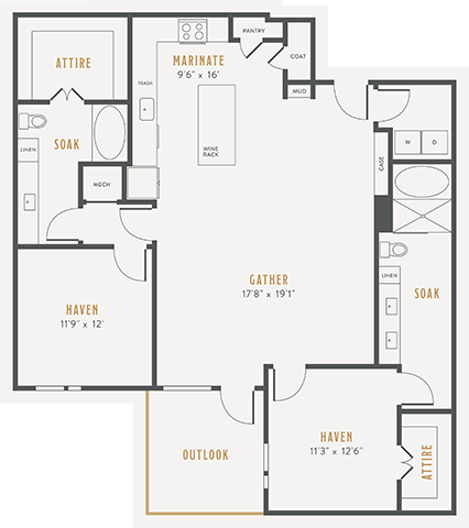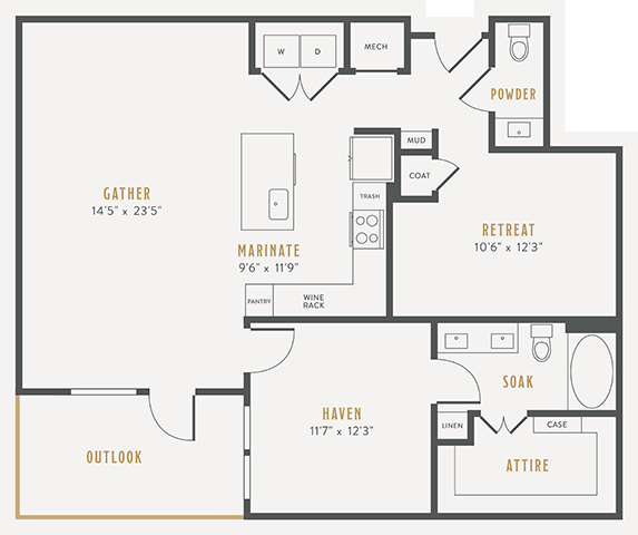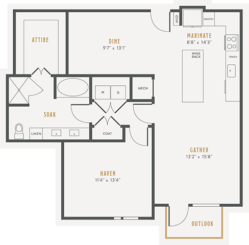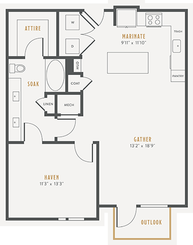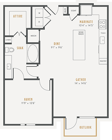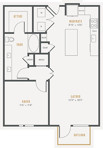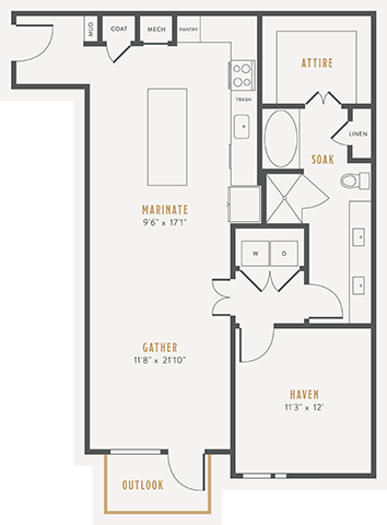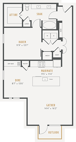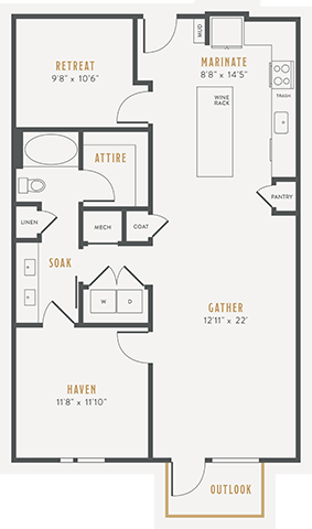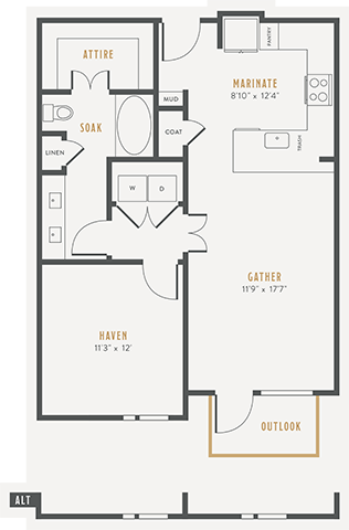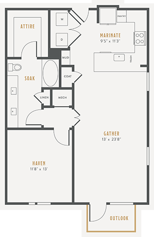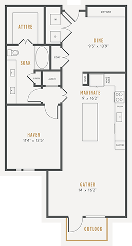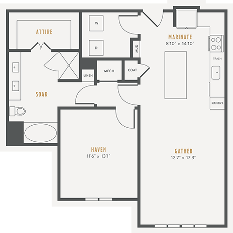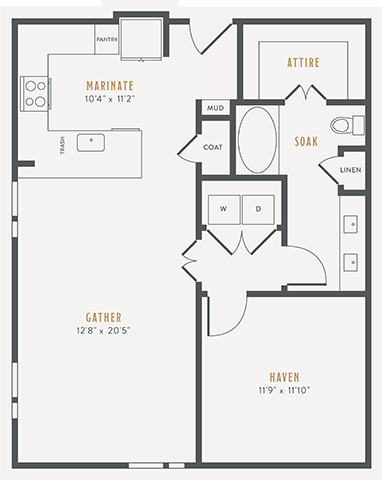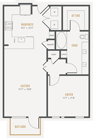 Modelo de apartamento: A1Desde $1,9151 Dormitorio, 1 Baño, 588 sq ftDisponible Ahora![]()