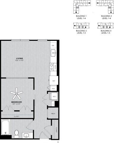 Estudio, 1 Baño, 592 pies²Disponible Mar 4Galería del Modelo