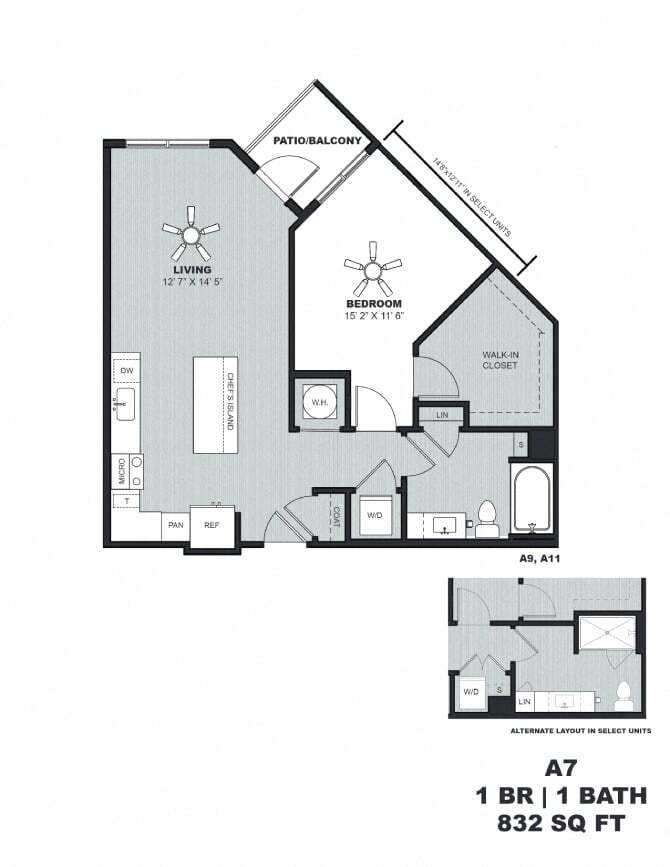 1 Dormitorio, 1 Baño, 756 pies²Disponible AhoraGalería del Modelo