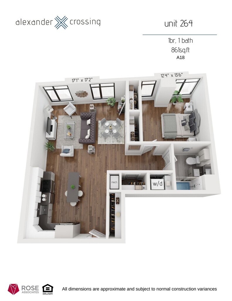 Alexander Crossing ofrece un estilo exquisito en un entorno vibrante. Selecciona la casa de tus sueños entre uno de nuestros elegantes apartamentos con planos de planta abiertos, cocinas gourmet con electrodomésticos GE de acero inoxidable, encimeras de cuarzo, islas móviles (en muchos apartamentos) y lavadoras y secadoras estándar en el apartamento. Disfruta de una colección de comodidades cuidadosamente seleccionadas con características lujosas para elevar tu tiempo de descanso. Olvídate de la membresía al gimnasio y ejercita tus músculos en nuestro amplio gimnasio con equipos de ejercicios de última generación, clases a pedido y vistas al río Hudson. O bien, cuando el día requiera algo más relajante, disfruta de un chapuzón en la piscina climatizada al aire libre mientras miras la puesta del sol sobre el Hudson. Trabaja desde casa sin salir de tu casa en nuestro salón social de 2 pisos y espacio de trabajo compartido. Por dentro y por fuera, Alexander Crossing tiene todo para llevar tu estilo de vida en casa a un nivel completamente nuevo.