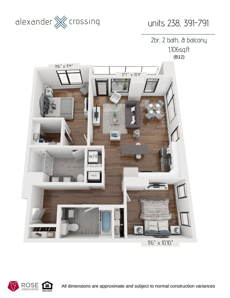 Alexander Crossing ofrece apartamentos de Estudio a 3 Dormitorios desde $2,076 con 436–1,354 pies cuadrados. Aquí está el precio actual y la disponibilidad: