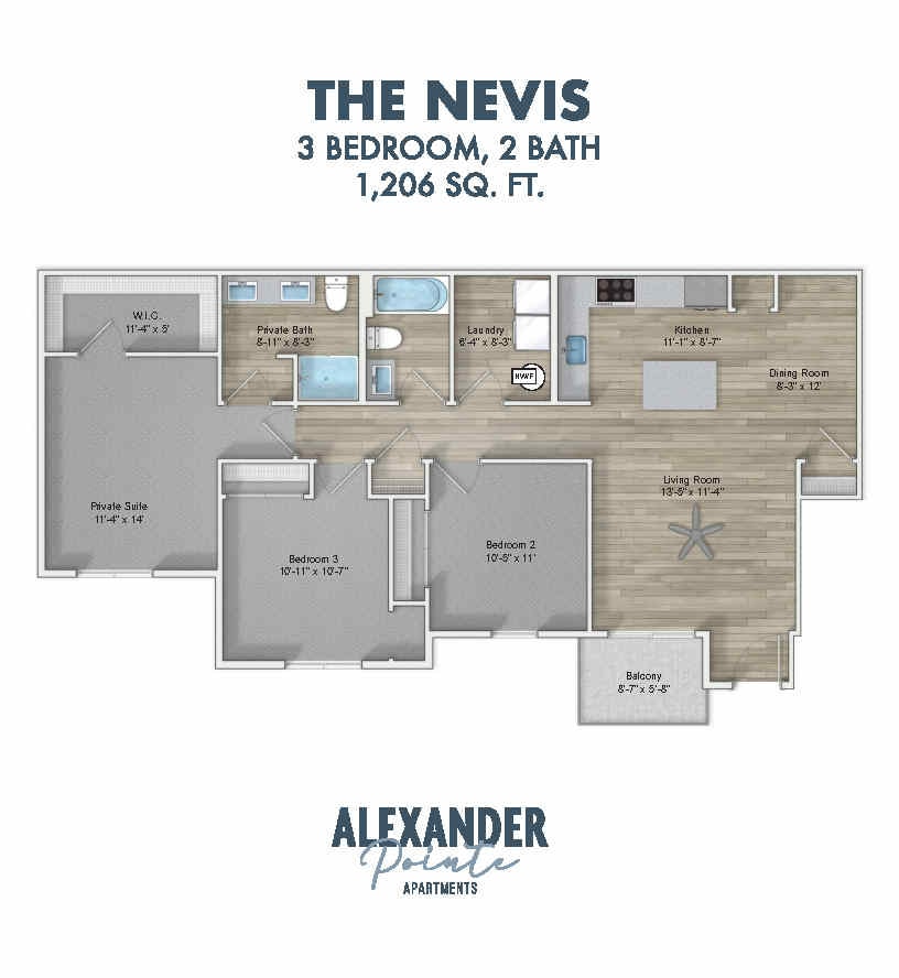 3 Dormitorios, 2 Baños, 1206 pies²Galería del Modelo