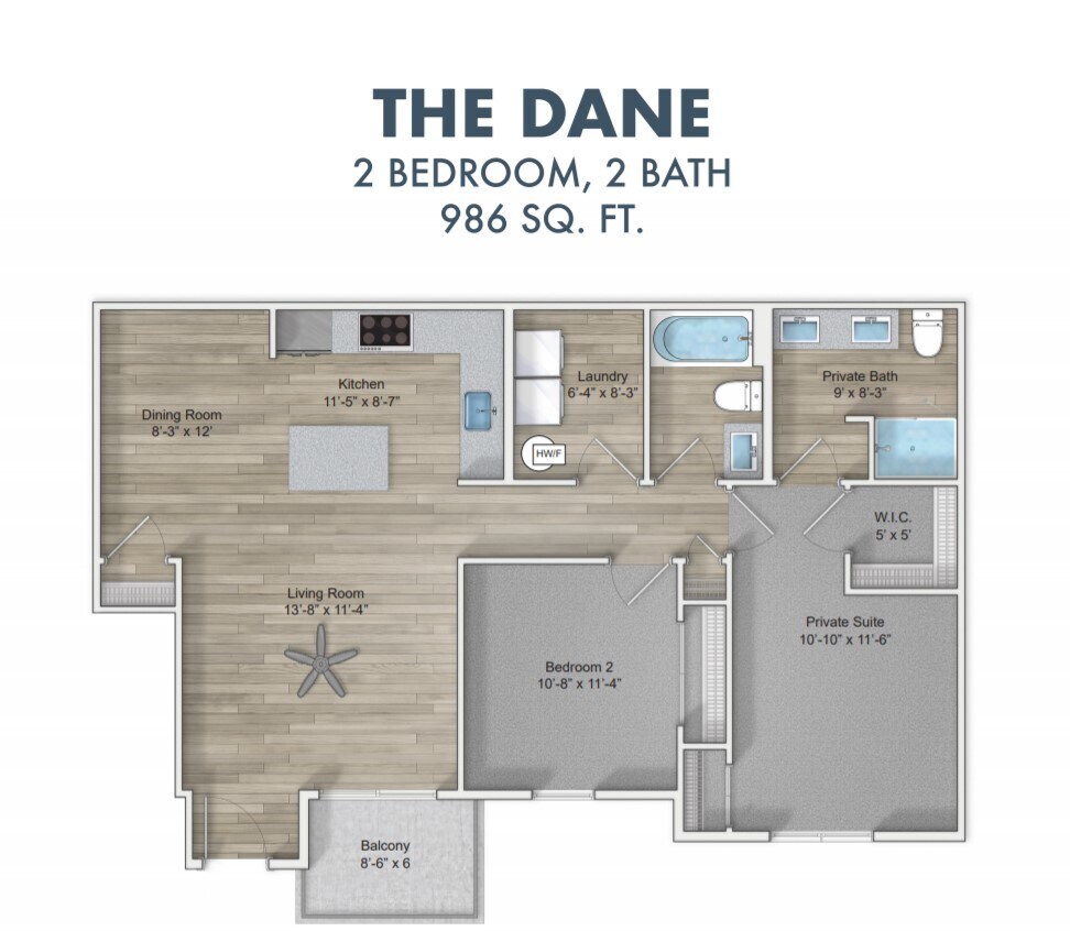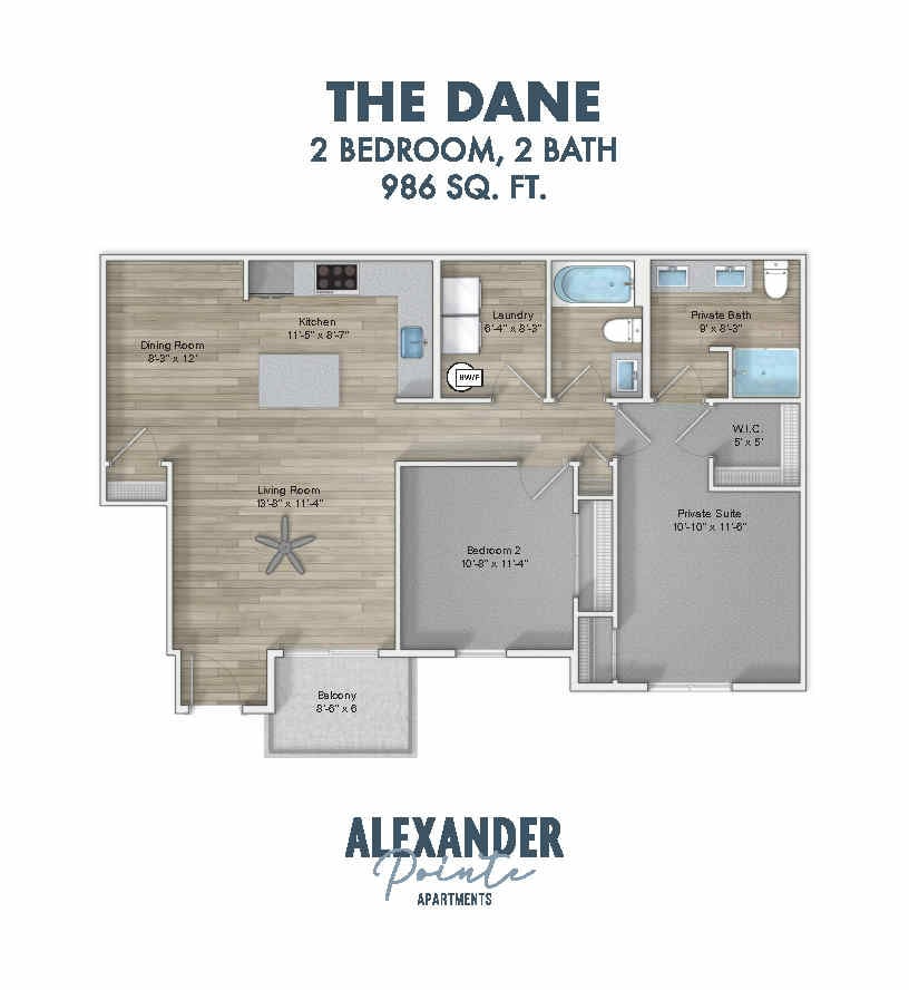 Modelo de apartamento: Dane2 Dormitorios, 2 Baños, 986 sq ftDisponible AhoraPlanosFotos![]()