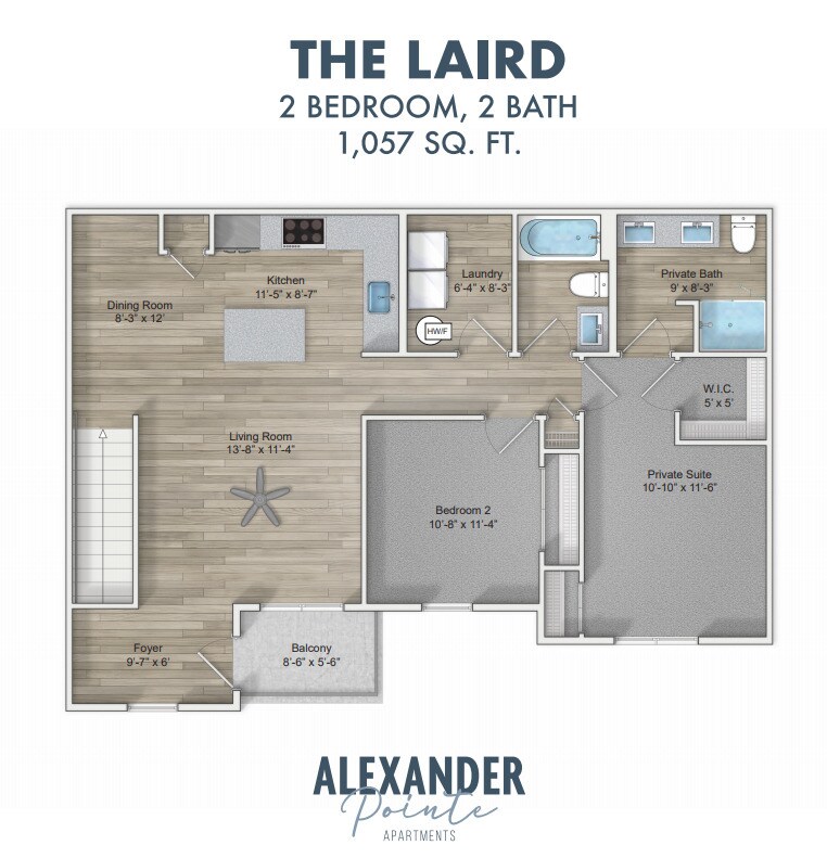 Modelo de apartamento: Laird2 Dormitorios, 2 Baños, 1057 sq ftDisponible October 31, 2025PlanosFotos![]()