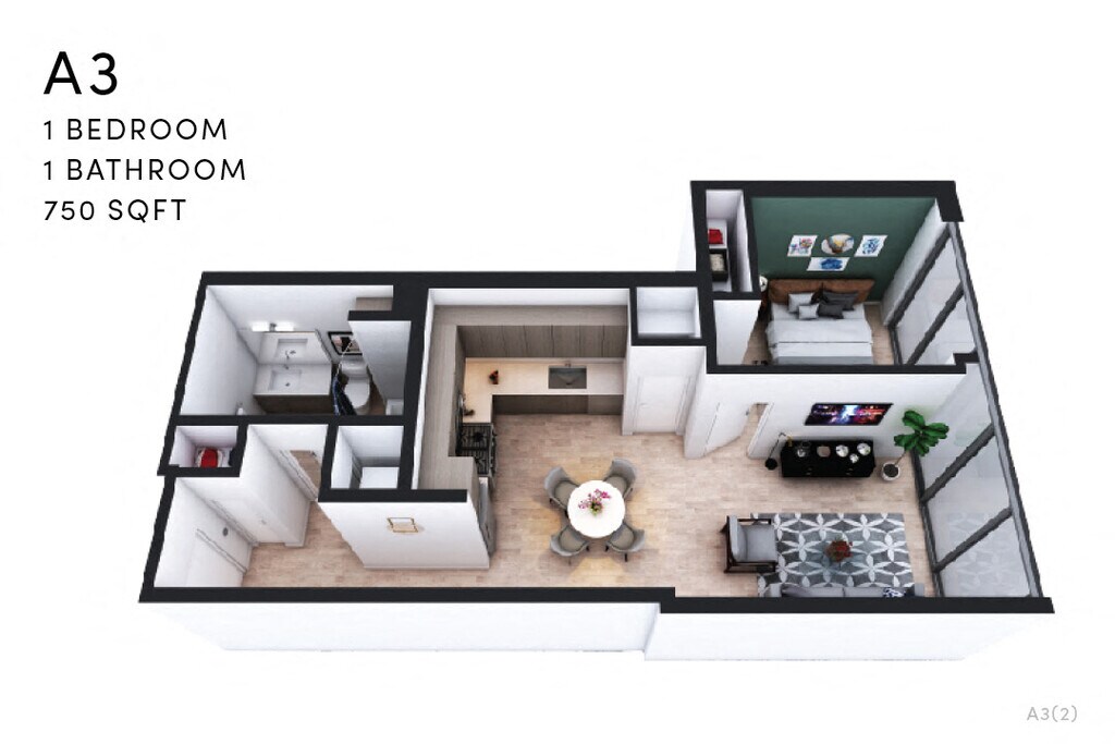 Modelo de apartamento: S3 StudioDesde $2,254Estudio, 1 Baño, 609 sq ftDisponible January 23, 2026![]()