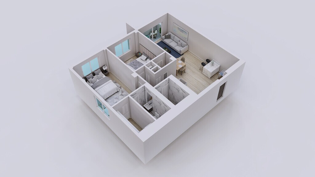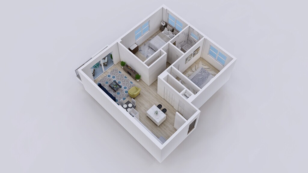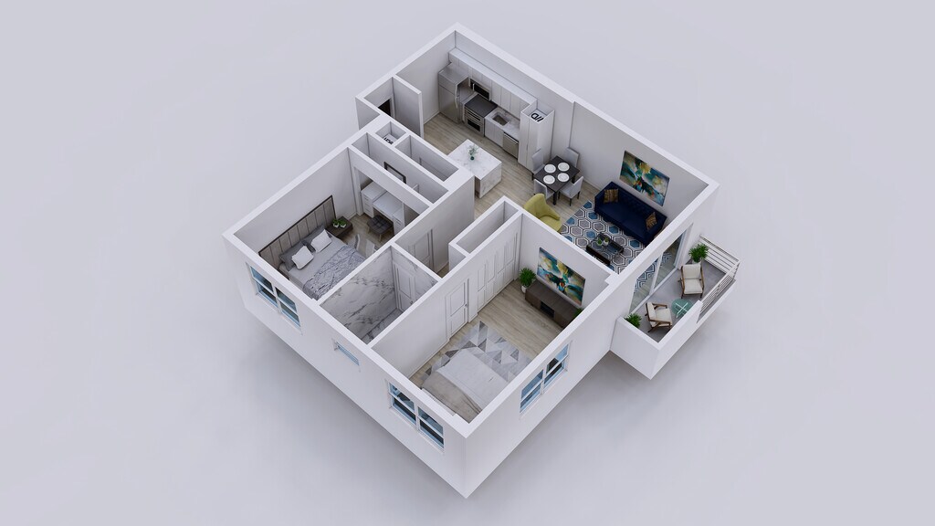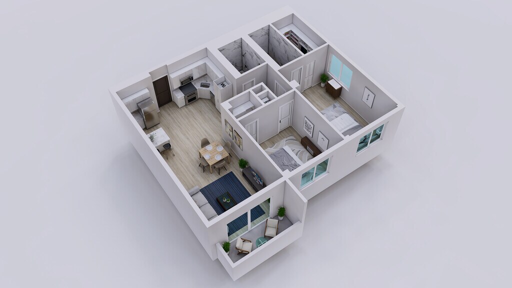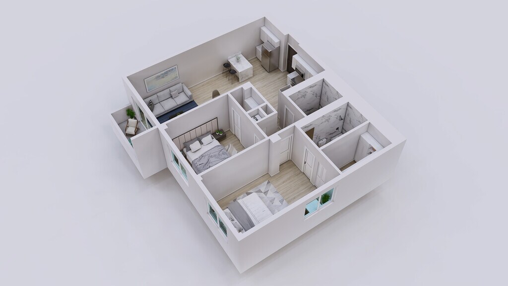 2 Dormitorios, 1 Baño, 900 pies²Galería del Modelo