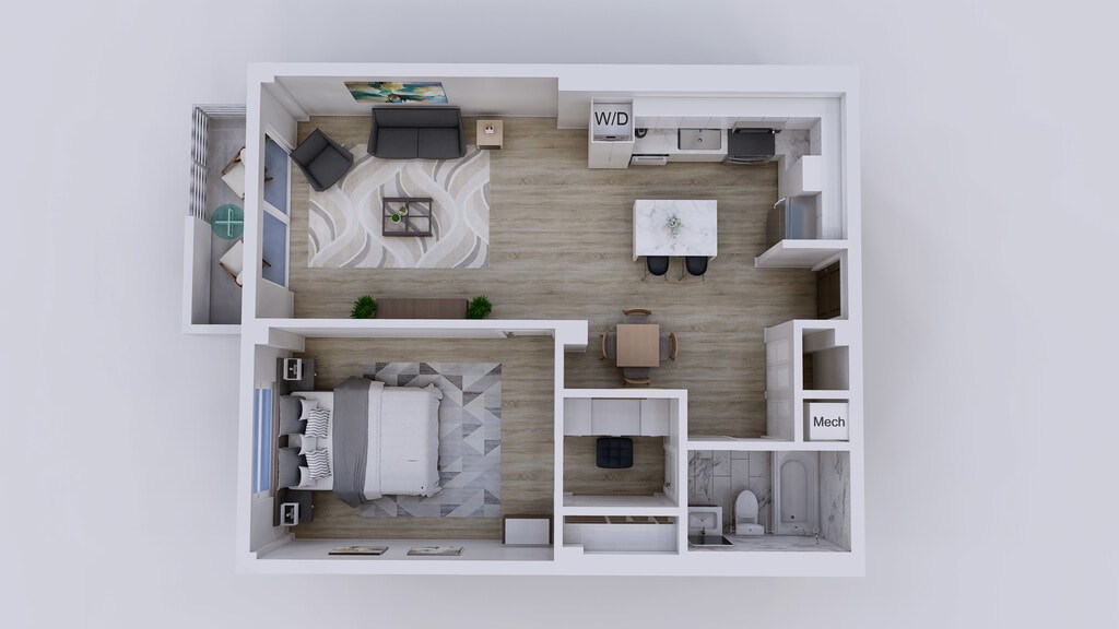 1 Dormitorio, 1 Baño, 750 pies²Galería del Modelo