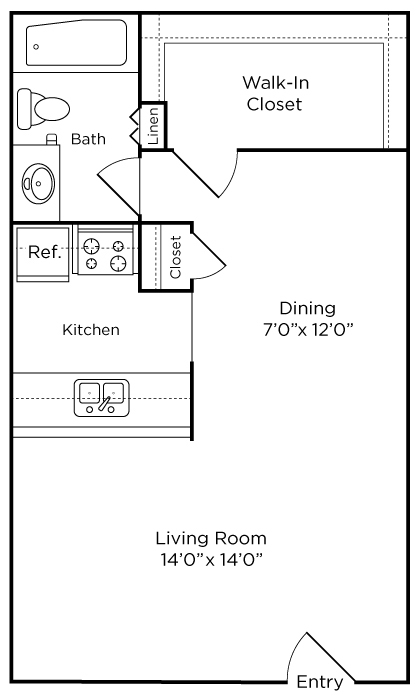 Estudio, 1 Baño, 500 pies²Disponible AhoraGalería del Modelo