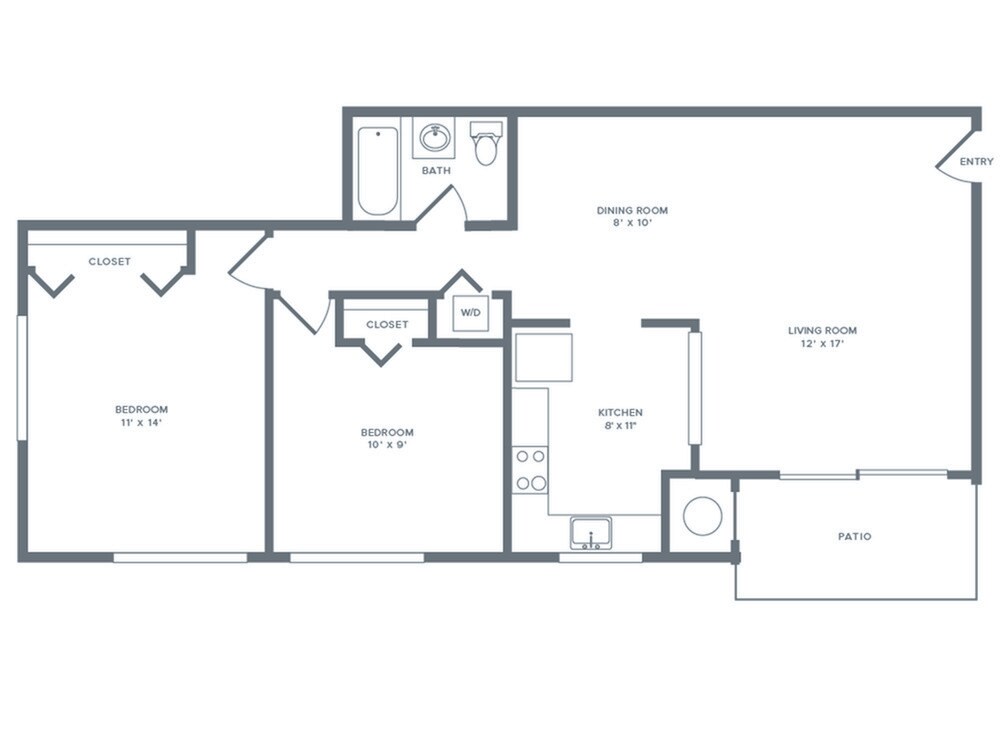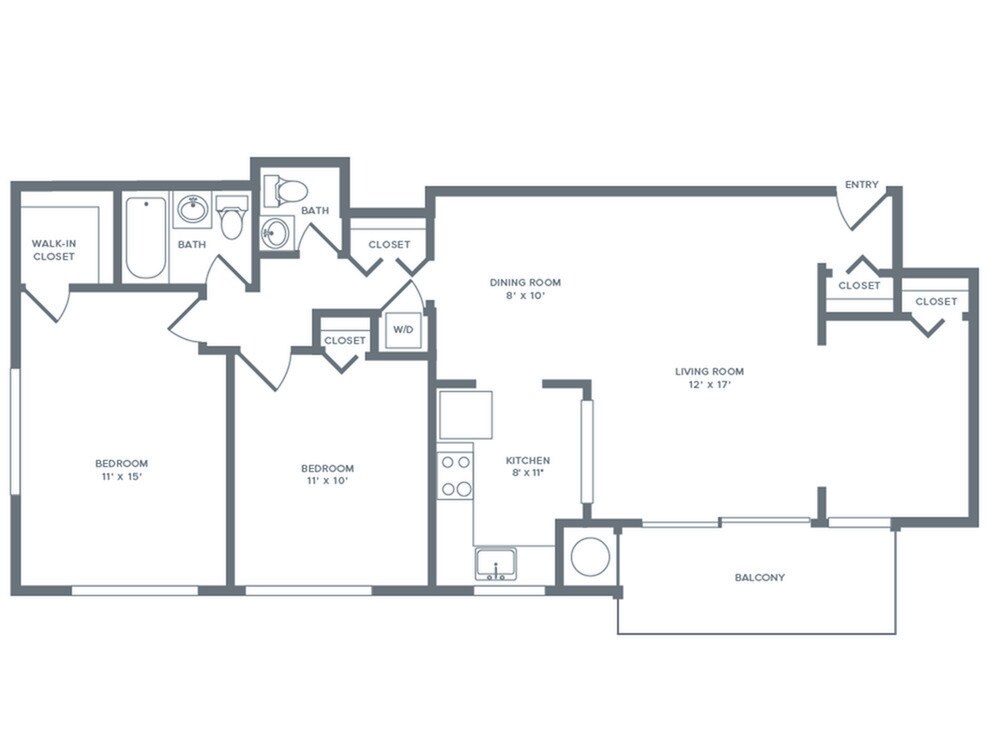 2 Dormitorios, 1 Baño, 970 pies²Disponible AhoraGalería del Modelo