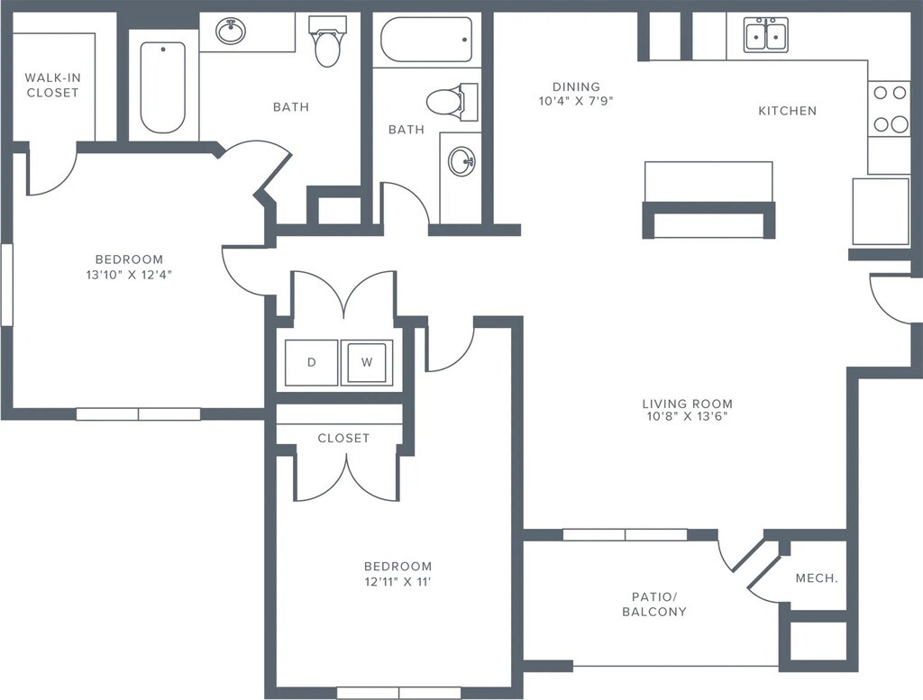 1 Dormitorio, 1 Baño, 899 pies²Disponible AhoraGalería del Modelo