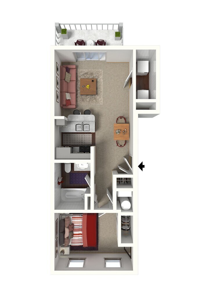 Modelo de apartamento: SacramentoDesde $1,0791 Dormitorio, 1 Baño, 650 sq ftDisponible Ahora![]()