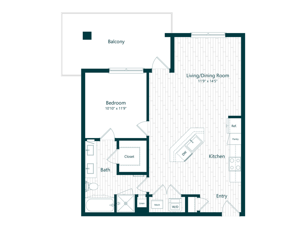 1 Dormitorio, 1 Baño, 804 pies²Disponible AhoraGalería del Modelo