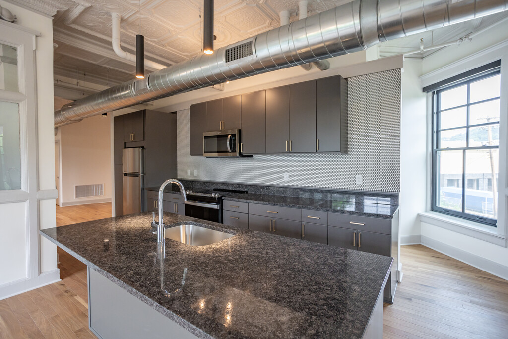 Located at the nexus of Allegheny West and the Mexican War Streets neighborhoods in central northside Pittsburgh, Allegheny Branch House Lofts is a renovated mid-rise building that offers studio, one- and two-bedroom living spaces, including townhome apartments. Each of the 36 units features either luxuriously tall timber ceilings or historical ceilings, real wood flooring, and custom cabinetry and closets. The boutique, upscale units showcase granite countertops, stainless steel appliances, natural light, and views of the city.