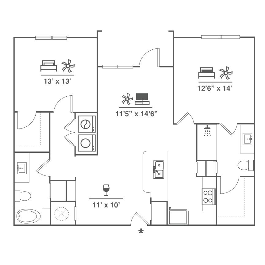 Modelo de apartamento: A2Llame para Precios1 Dormitorio, 1 Baño, 984 sq ftNo Disponible![]()