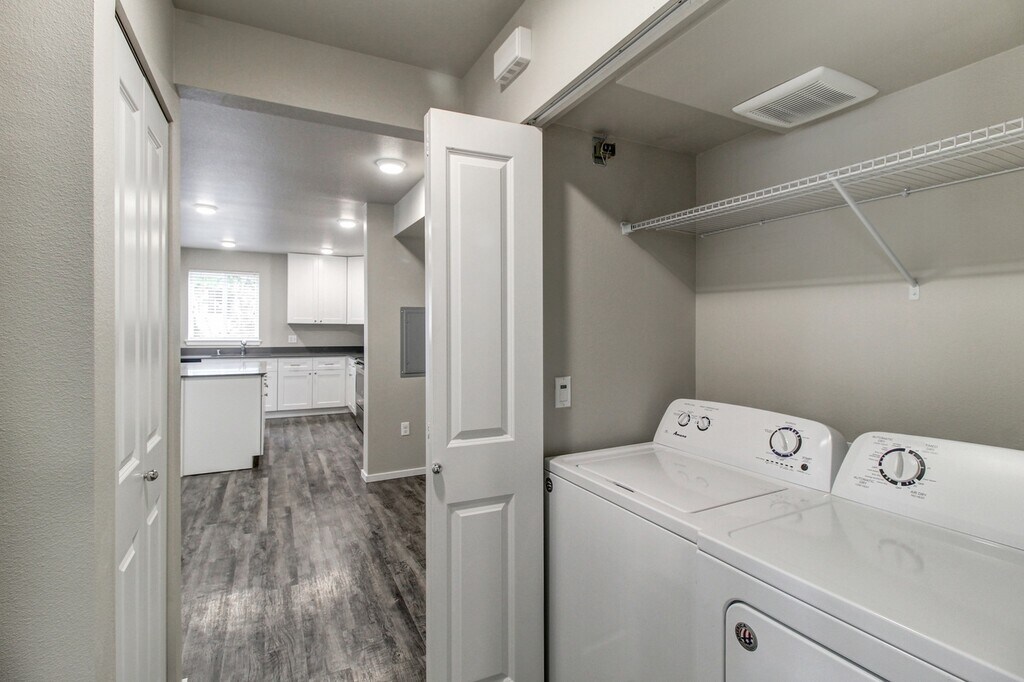 1 bedroom with plenty of counter space including an island in the kitchen and full size washer/dryer.