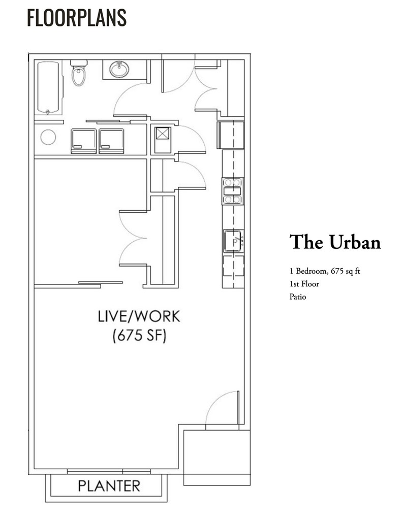 Modelo de apartamento: Alleyworks - 1 Bed/1 Bath - The Avenue - LIMITE...$1,2991 Dormitorio, 1 Baño, 725 sq ftDisponible July 31, 2026Alleyworks - 1 Bed/1 Bath - The Avenue - LIMITE... - Plano 1 Alleyworks - 1 Bedroom - Work/Live Unit