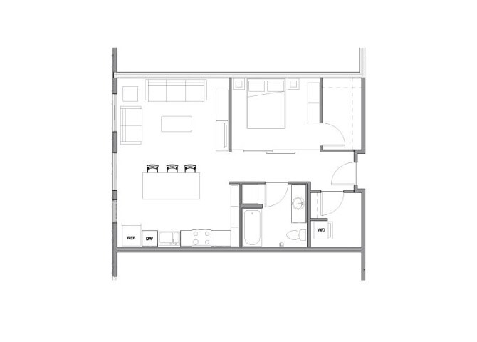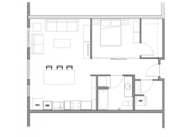 Estudio, 1 Baño, 597-616 pies²Disponible AhoraGalería del Modelo