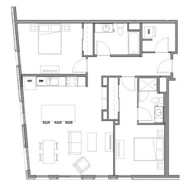 1 Dormitorio, 1 Baño, 937 pies²Disponible Dec 16Galería del Modelo