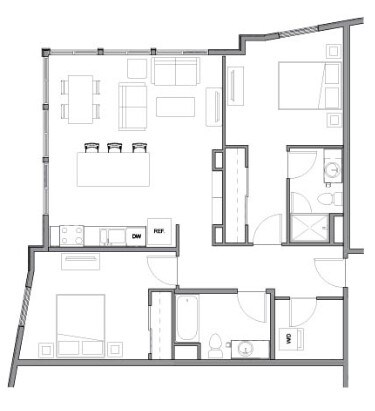 1 Dormitorio, 1 Baño, 851 pies²Disponible AhoraGalería del Modelo