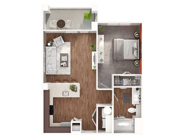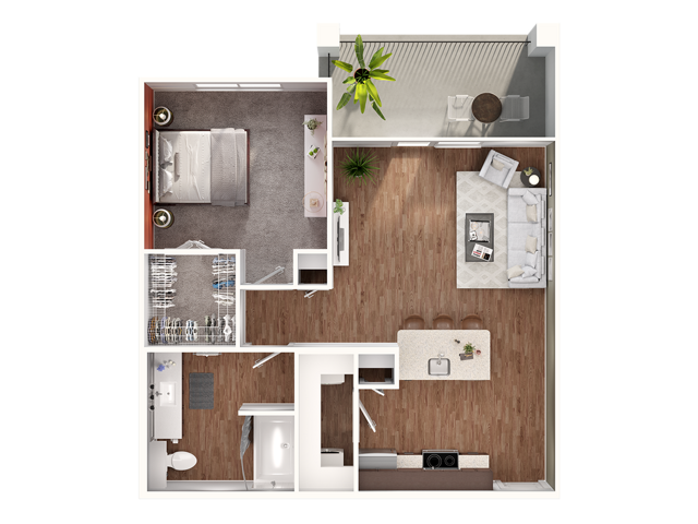 1 Dormitorio, 1 Baño, 625 pies²Disponible AhoraGalería del Modelo