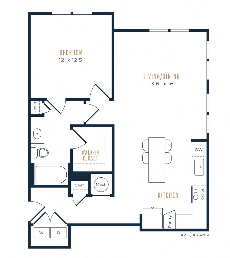 Modelo de apartamento: A1Desde $1,0991 Dormitorio, 1 Baño, 682 sq ftDisponible Ahora![]()