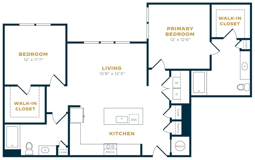 Modelo de apartamento: A2Desde $1,5101 Dormitorio, 1 Baño, 782 sq ftDisponible March 13, 2026![]()