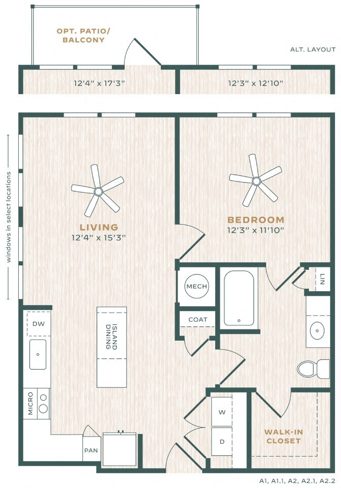 A3 - Plano 1 Unidad de apartamento: 2-100Modelo de apartamento: A3$1,5151 Dormitorio, 1 Baño, 829 sq ftDisponible January 9, 20262 Dormitorios