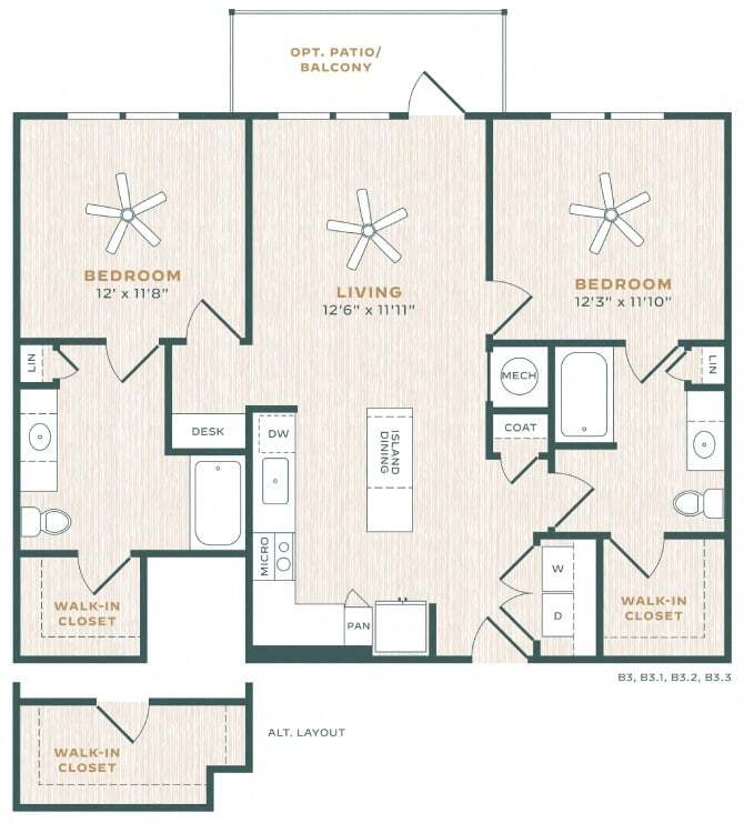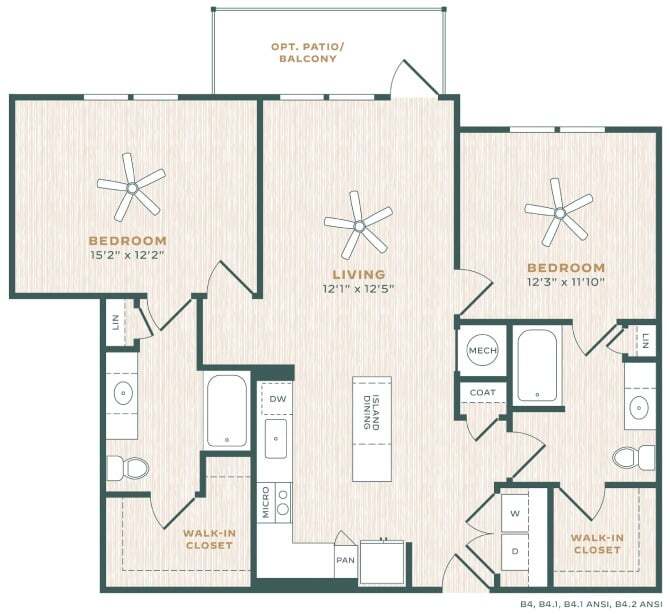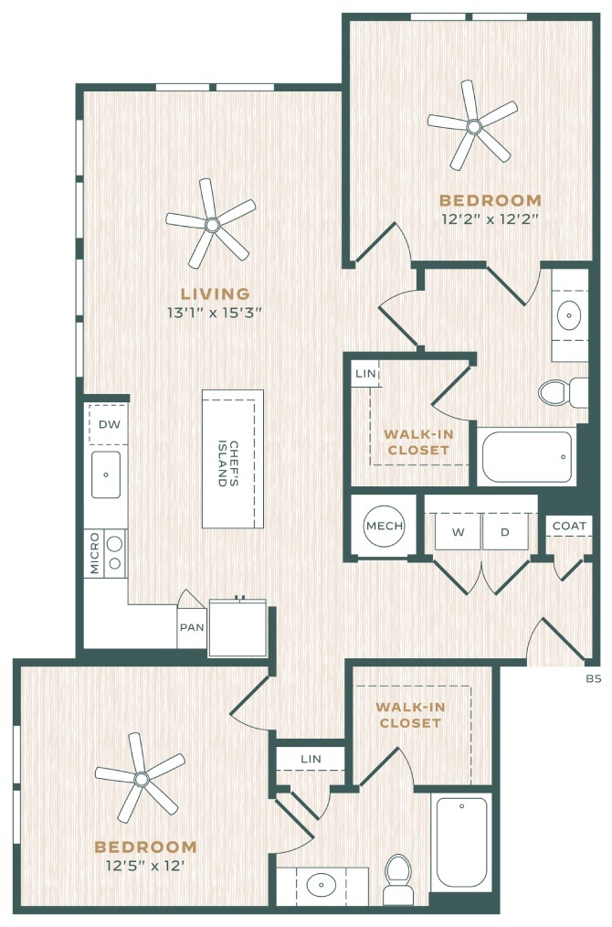 Modelo de apartamento: B5Desde $1,7052 Dormitorios, 2 Baños, 1138 sq ftDisponible AhoraLos planos de la planta son una interpretación artística. Todas las dimensiones son aproximadas. Los tamaños o el detalle del producto real y sus especificaciones pueden variar. No todas las características están disponibles en todos los hogares para rentar. Los precios y la disponibilidad están sujetos a cambios. El alquiler que se muestra es mensual. Se pueden aplicar ciertos cargos, por ejemplo, entrega de paquetes, recolección de basura, agua, servicios, etc. Depositos varian. Consulta a un representante para conocer detalles.