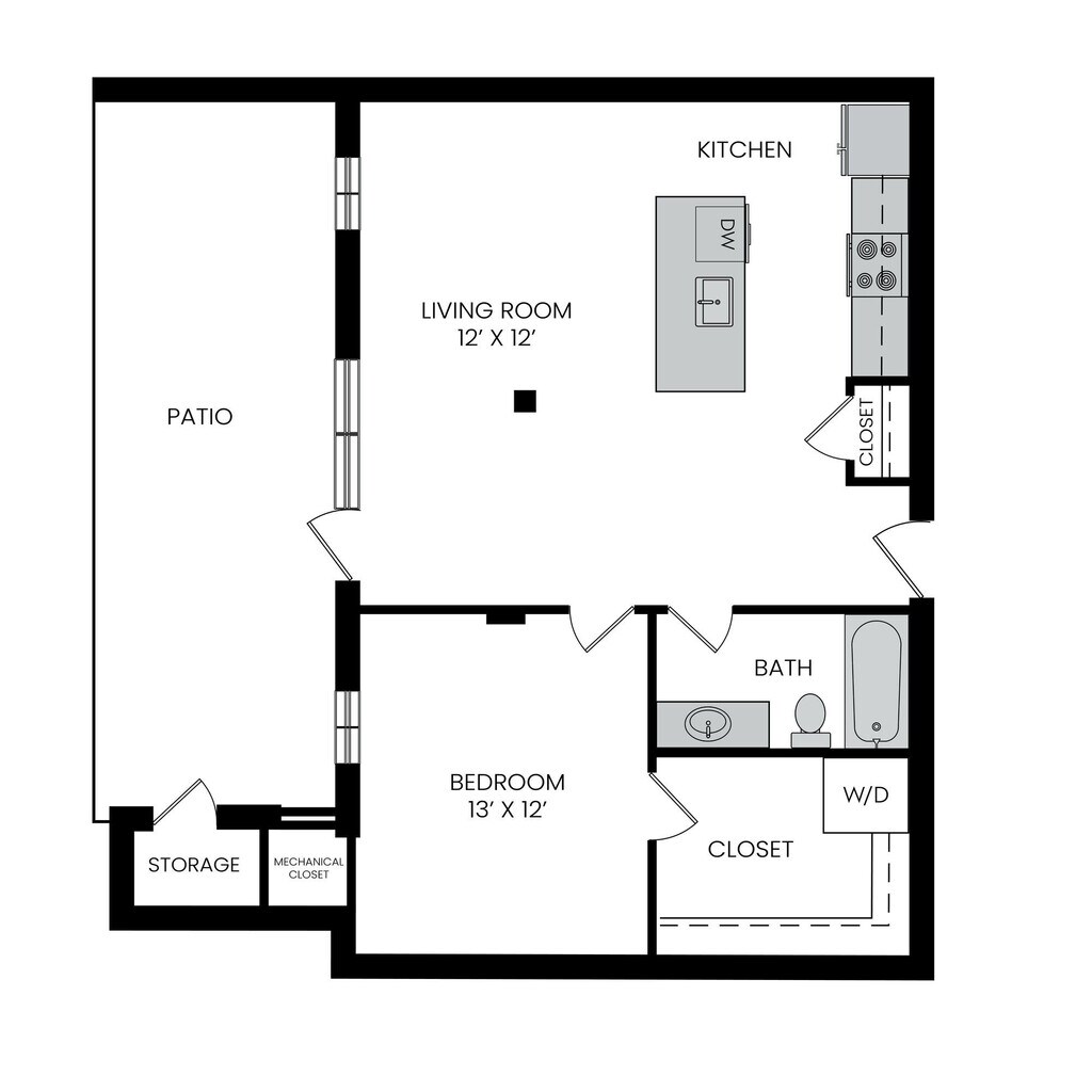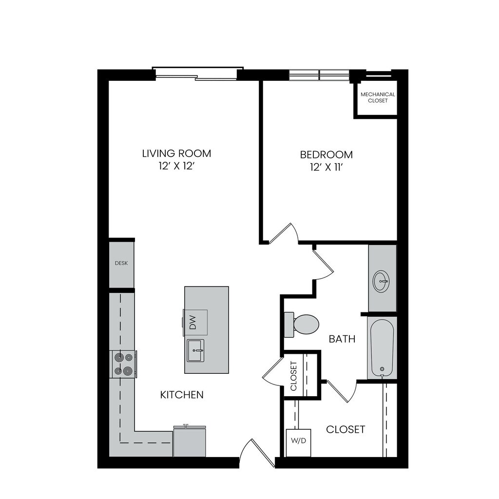 Modelo de apartamento: A1$1,8501 Dormitorio, 1 Baño, 651 sq ftDisponible Ahora![]()
