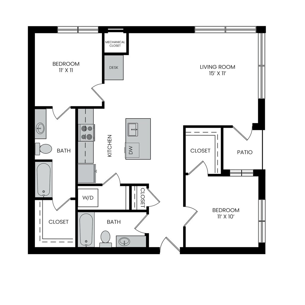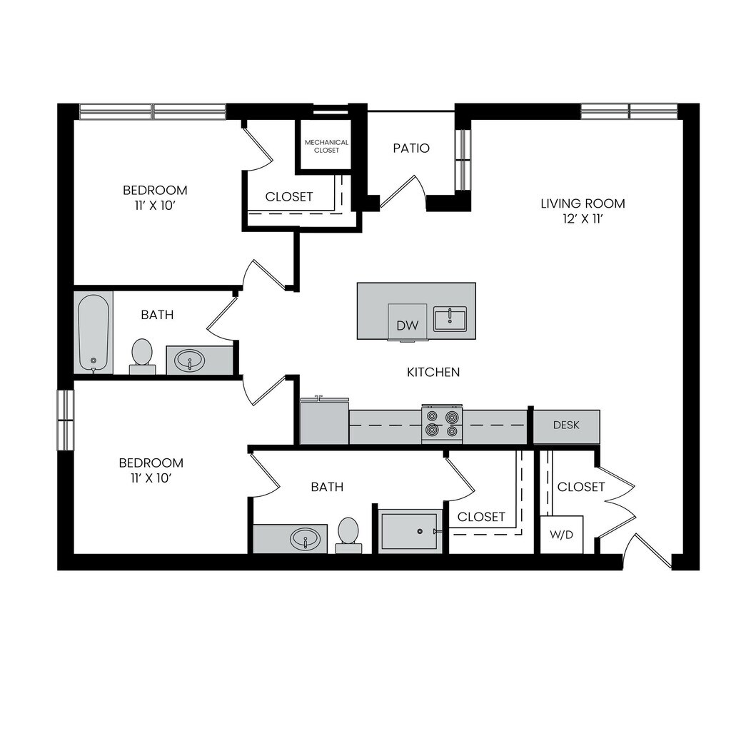 1 Dormitorio, 1 Baño, 728 pies²Disponible AhoraGalería del Modelo