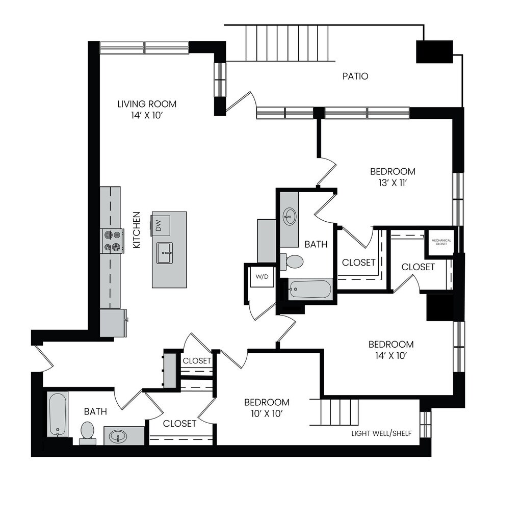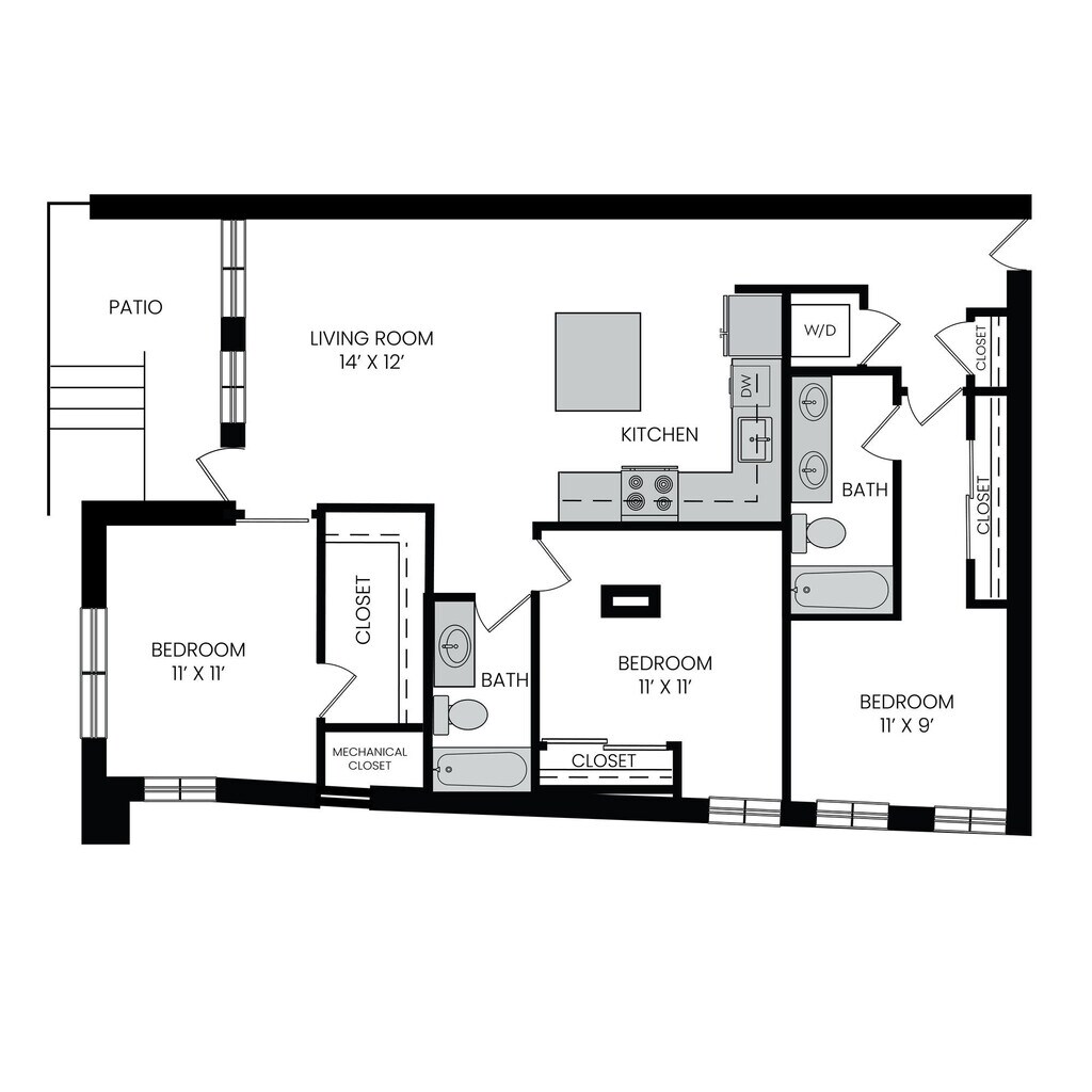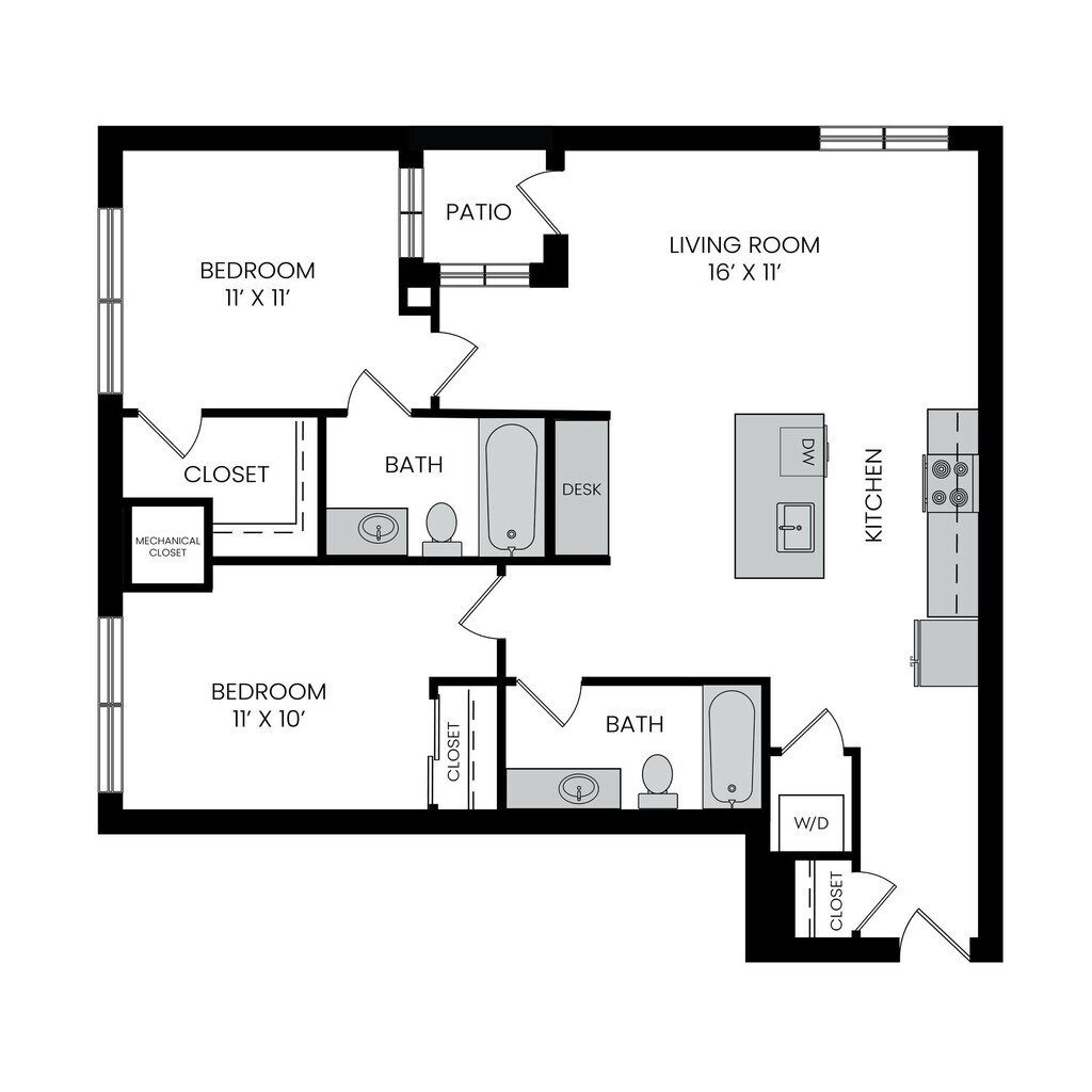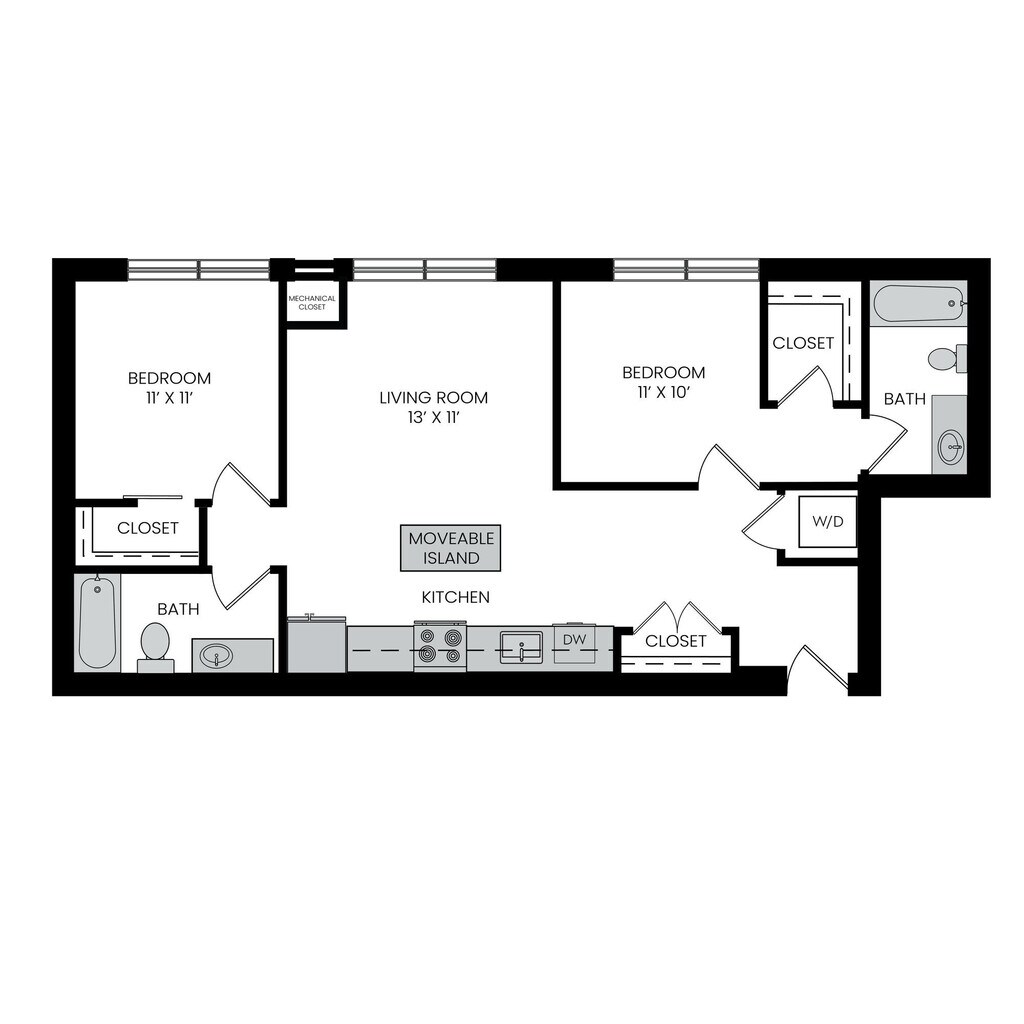 Modelo de apartamento: A6 AFFORDABLE$1,8001 Dormitorio, 1 Baño, 728 sq ftDisponible Ahora![]()
