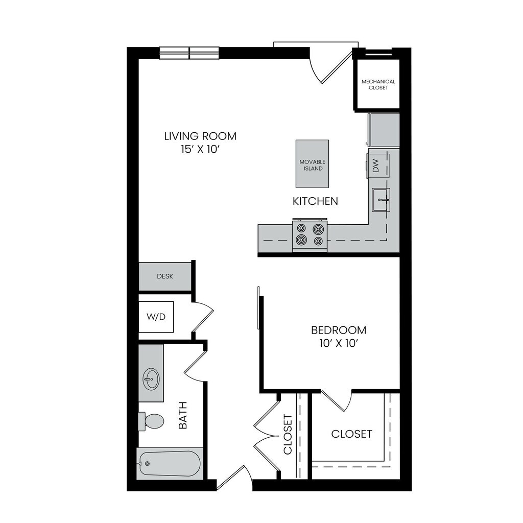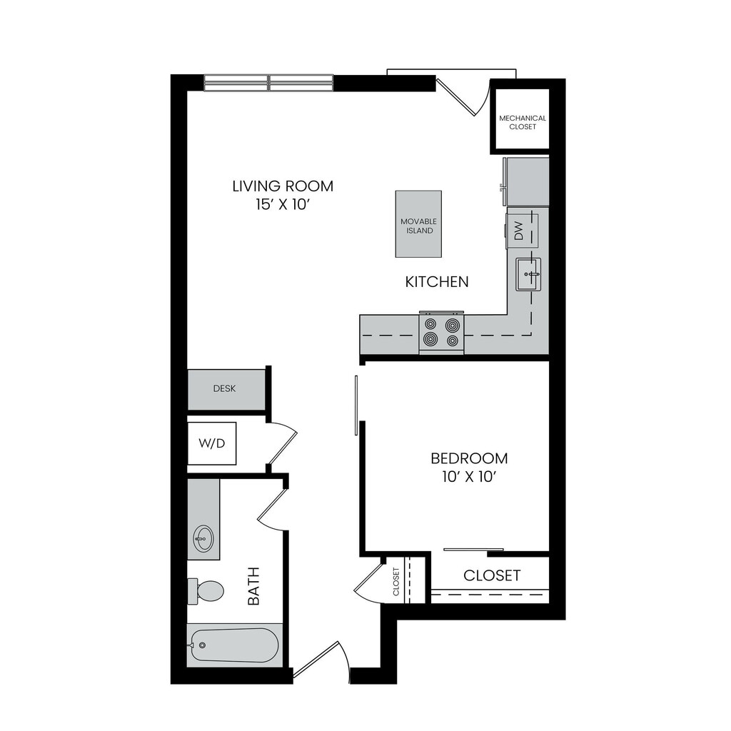 Estudio, 1 Baño, 424 pies²Disponible AhoraGalería del Modelo