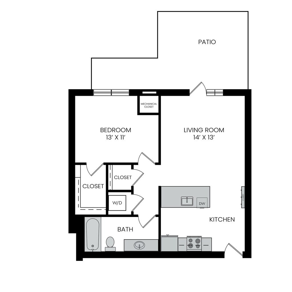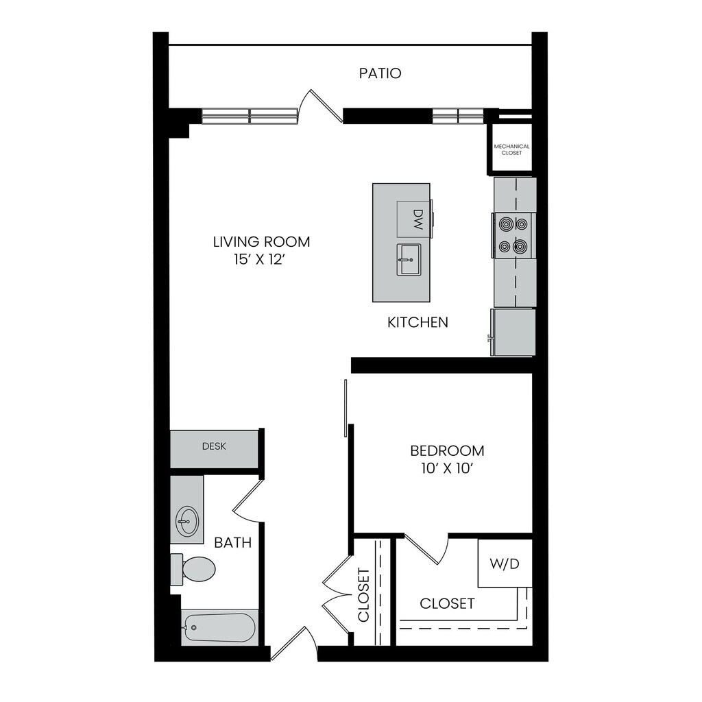 1 Dormitorio, 1 Baño, 651 pies²Disponible AhoraGalería del Modelo