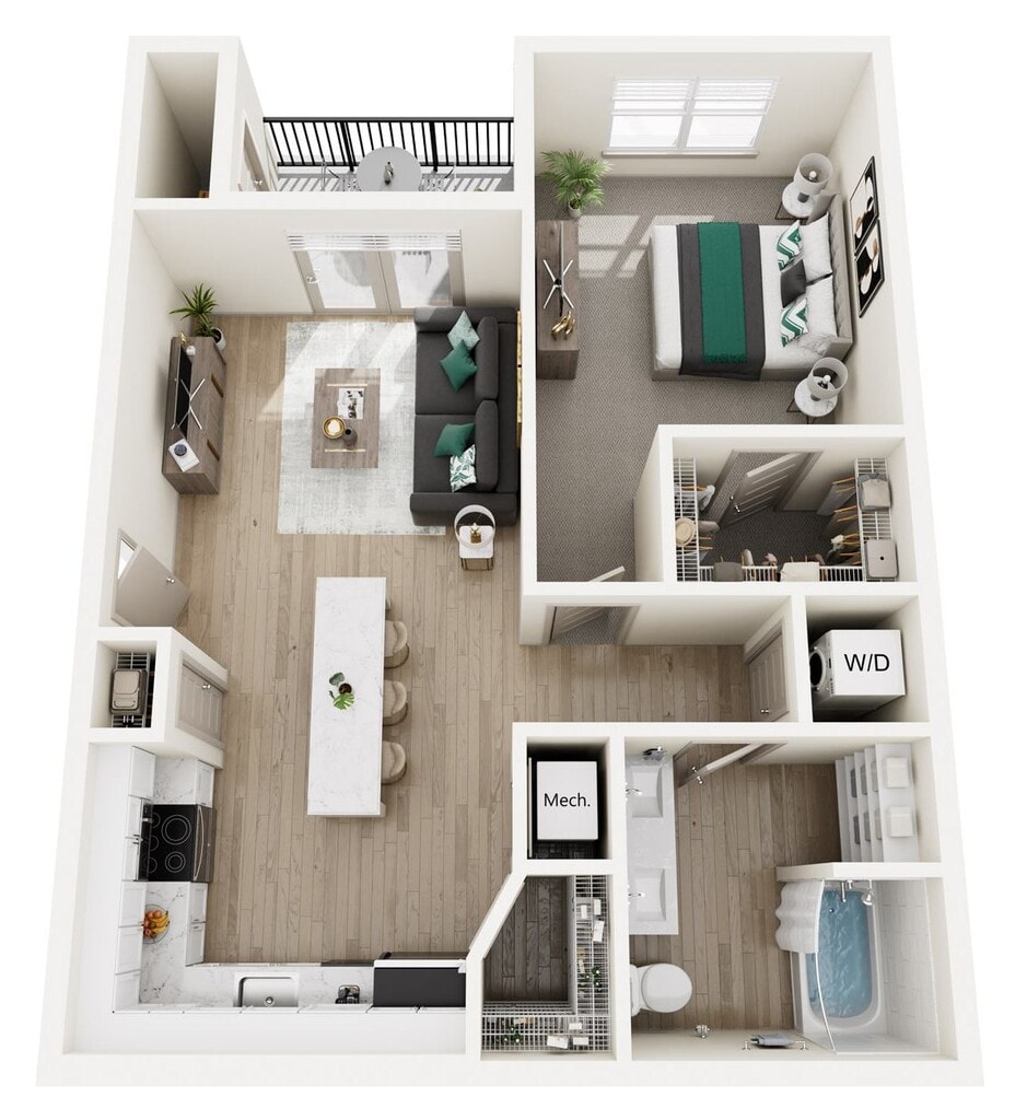 1 Dormitorio, 1 Baño, 819 pies²Disponible AhoraGalería del Modelo