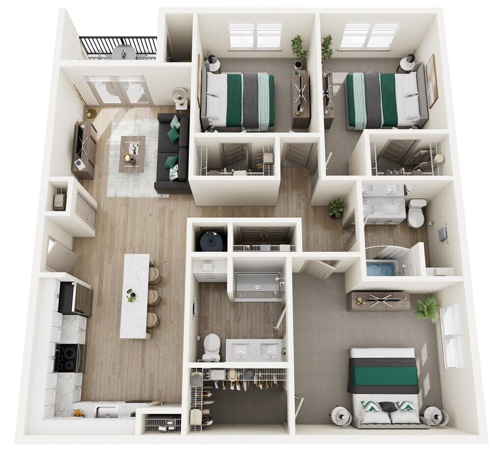 Modelo de apartamento: 3 Bed, 2 BathDesde $1,9953 Dormitorios, 2 Baños, 1525 sq ftDisponible December 1, 2025![]()