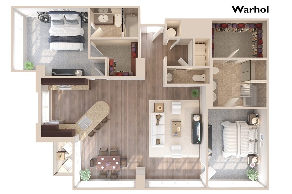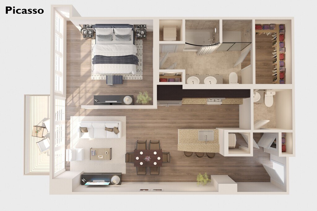 Modelo de apartamento: Monet - 1 Bedroom 1 BathDesde $1,9501 Dormitorio, 1 Baño, 846 sq ftDisponible Ahora![]()