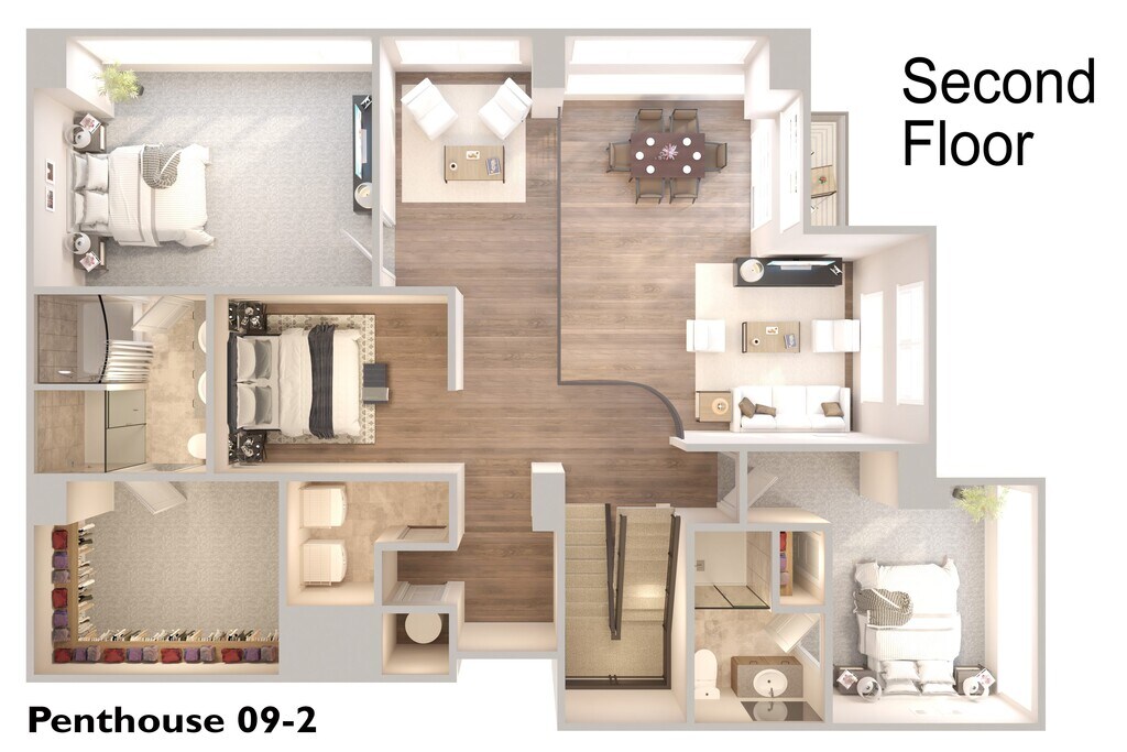 1 Dormitorio, 1 Baño, 690 pies²Disponible AhoraGalería del Modelo