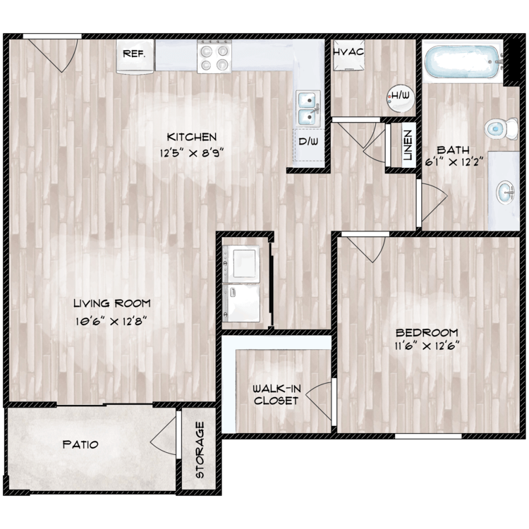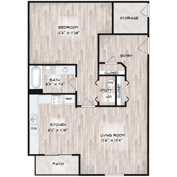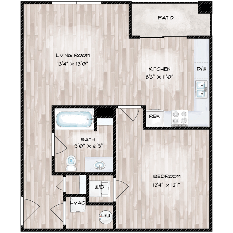 Modelo de apartamento: Beardsley$995Estudio, 1 Baño, 606 sq ftDisponible May 7, 2026![]()