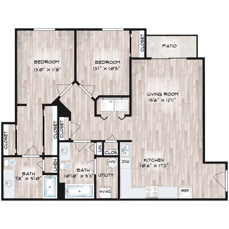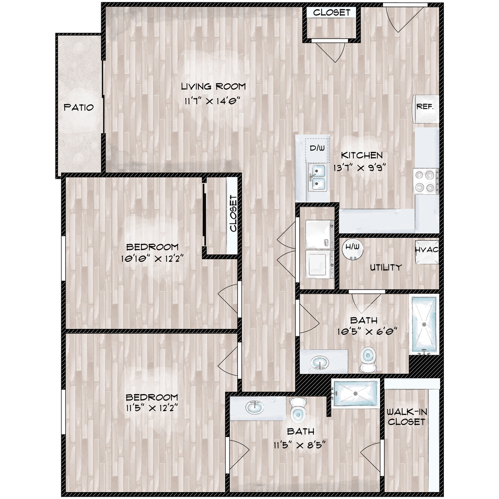 Modelo de apartamento: LexingtonLlame para Precios2 Dormitorios, 2 Baños, 990 sq ftNo Disponible![]()