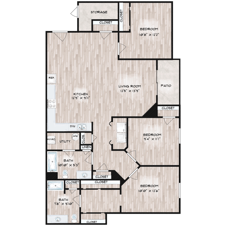 3 Dormitorios, 2 Baños, 1161 pies²Galería del Modelo