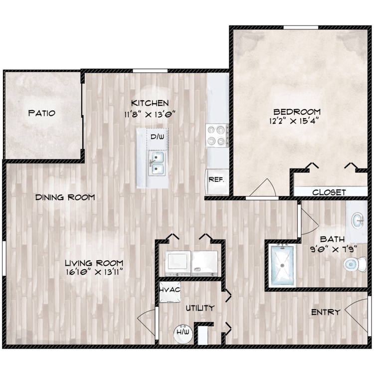 Modelo de apartamento: WendallLlame para Precios1 Dormitorio, 1 Baño, 810 sq ftNo Disponible![]()
