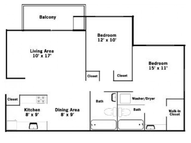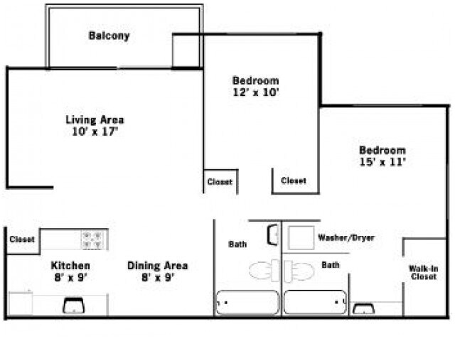 Modelo de apartamento: 2BR/1BA HandicapLlame para Precios2 Dormitorios, 1 Baño, 980 sq ftNo Disponible![]()