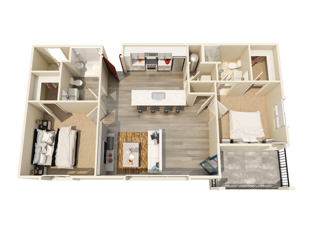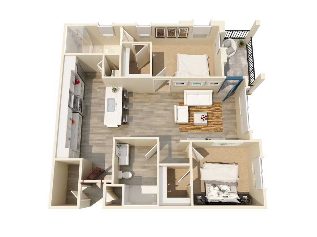2 Dormitorios, 2 Baños, 980 pies²El más grandeEsta opción tiene las unidades más grandes para este modeloGalería del Modelo