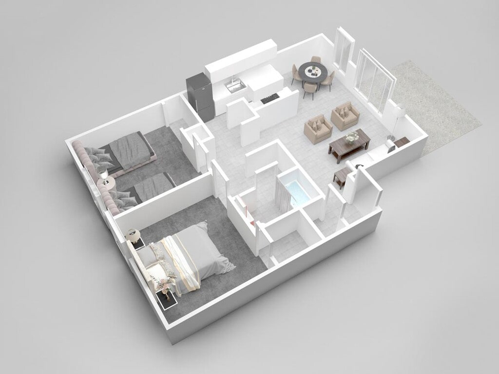 2 Dormitorios, 1 Baño, 818 pies²Disponible AhoraGalería del Modelo