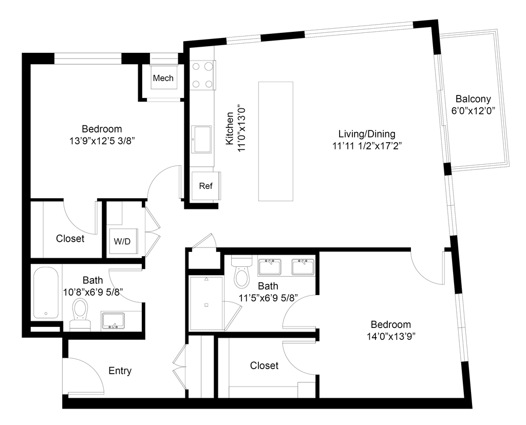 Modelo de apartamento: A6Desde $1,6351 Dormitorio, 1 Baño, 534 sq ftDisponible Ahora![]()