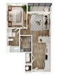 Modelo de apartamento: A1Desde $1,8991 Dormitorio, 1 Baño, 746 sq ftDisponible Ahora![]()